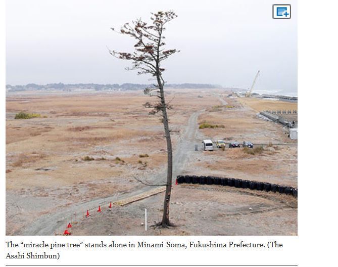 MINAMI-SOMA, Fukushima Prefecture--Nearly four years after the towering March 2011 tsunami swept away 70 households and claimed 54 lives in this seashore community, a lone “miracle pine tree” that remained standing continues to inspire local residents.